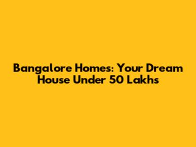 Bangalore Homes: Your Dream House Under 50 Lakhs