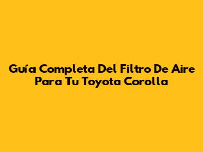 Guía Completa Del Filtro De Aire Para Tu Toyota Corolla