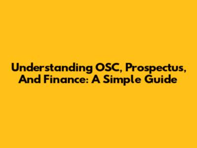 Understanding OSC, Prospectus, And Finance: A Simple Guide