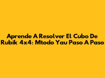Aprende A Resolver El Cubo De Rubik 4x4: Mtodo Yau Paso A Paso