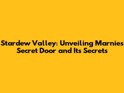 Hey Stardew Valley fans, ever wondered about the mysteries hidden within the game? Let's dive deep into one of the more intriguing secrets: Marnie's Secret Door! This article is your ultimate guide, covering everything from finding the door to what lies behind it, and even a few tips and tricks to make your Stardew Valley life a little easier. So, grab your pickaxe, put on your boots, and let's get started on this exciting journey to uncover the secrets of Marnie's farm!