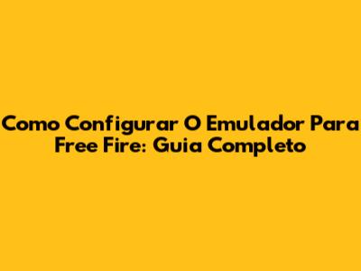 Como Configurar O Emulador Para Free Fire: Guia Completo