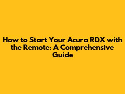 Step-by-Step Guide to Remote Starting Your Acura RDX