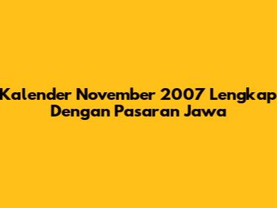 Kalender November 2007 Lengkap Dengan Pasaran Jawa