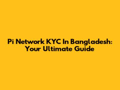 Pi Network KYC In Bangladesh: Your Ultimate Guide