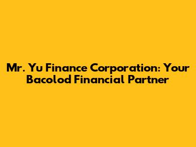 Mr. Yu Finance Corporation: Your Bacolod Financial Partner