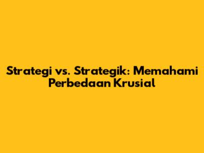 Perbedaan utama antara strategi dan strategik terletak pada fokus dan pendekatannya. Strategi berfokus pada what (apa yang harus dilakukan) dan how (bagaimana melakukannya), sedangkan strategik berfokus pada why (mengapa melakukan sesuatu) dan what if (bagaimana jika). Strategi adalah tentang perencanaan dan pelaksanaan, sementara strategik adalah tentang pemikiran dan pengambilan keputusan.