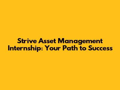 Are you ready to kickstart your career in the world of finance? A Strive Asset Management internship could be your golden ticket! This guide dives deep into what makes this internship so special, what you can expect, and how to snag that coveted spot. We'll cover everything from the company's mission to the day-to-day tasks you might encounter. So, buckle up and get ready to learn how to make your application shine!
