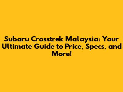 Hey there, car enthusiasts! Are you guys eyeing the Subaru Crosstrek? It's a fantastic compact SUV, known for its rugged looks, awesome all-wheel drive, and impressive safety features. If you're in Malaysia and wondering about the Subaru Crosstrek price Malaysia, you've come to the right place! We're diving deep into everything you need to know, from the price tags to the specs, and even why this car might just steal your heart. Let's get started, shall we?
