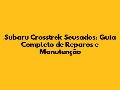 Subaru Crosstrek seusados, uma escolha popular no mercado de carros usados, combinando robustez, confiabilidade e capacidade off-road. Se você está pensando em adquirir um Subaru Crosstrek usado, ou já possui um, este guia completo de reparos e manutenção é essencial para manter seu veículo em ótimas condições. Vamos explorar tudo, desde os cuidados básicos até os reparos mais complexos, garantindo que seu Crosstrek continue rodando por muitos anos.