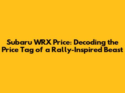 Unveiling the Subaru WRX Price: A Comprehensive Overview