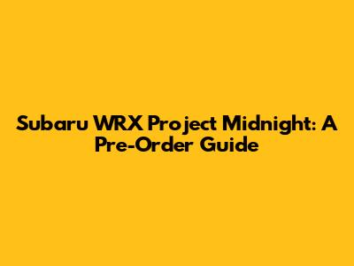 Hey guys, are you ready to dive into the exciting world of the Subaru WRX Project Midnight? This is your ultimate guide to understanding everything about the pre-order process. We're going to break down all the important details. From what the Project Midnight actually is, to how you can get your hands on one. Buckle up, because we're about to go on a ride! We'll cover everything, so you don't miss out on this awesome opportunity.