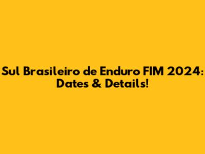 Unfortunately, I do not have the specific dates for the Sul Brasileiro de Enduro FIM 2024. You'll need to check the official event website or contact the organizers directly for the most up-to-date information. Keep an eye on the websites of relevant motorsports federations and clubs in Brazil.