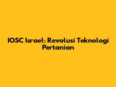 IOSC Israel: Revolusi Teknologi Pertanian