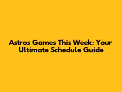 Astros Games This Week: Your Ultimate Schedule Guide
