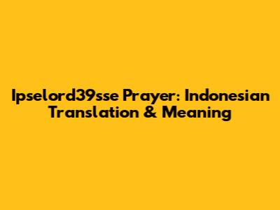 Ipselord39sse Prayer: Indonesian Translation & Meaning