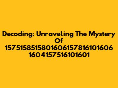 Decoding: Unraveling The Mystery Of 1575158515801606157816101606 1604157516101601