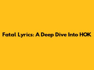 Fatal Lyrics: A Deep Dive Into HOK