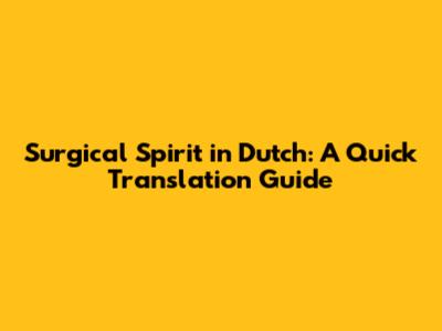 First off, let's get straight to the point. The most common and direct translation for surgical spirit in Dutch is geest van chirurgie. Now, I know what some of you might be thinking – “Is that it? Seems a bit literal!” And you’d be partly right. While geest van chirurgie is technically correct and understood, it’s not the term you’ll hear most often in a practical, everyday Dutch context, especially not in a medical setting. It’s more like a direct, word-for-word translation that doesn’t quite capture the functional essence of the product. Think of it like translating “hot dog” as “dog that is hot” – it makes sense, but it’s not how anyone refers to it!