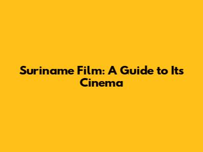 Suriname Film: A Guide To Its Cinema