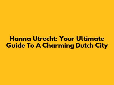 Hanna Utrecht: Your Ultimate Guide To A Charming Dutch City