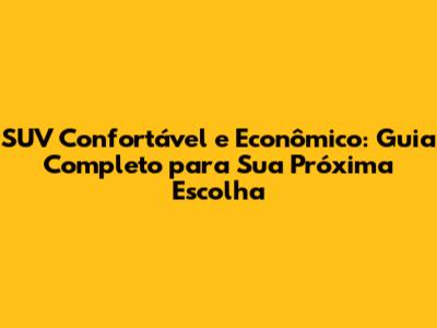 Por Que Escolher um SUV Confortável e Econômico?