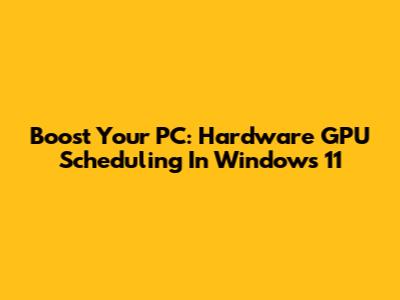 Boost Your PC: Hardware GPU Scheduling In Windows 11