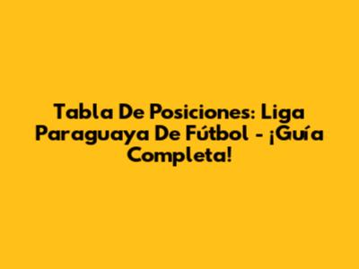 Tabla De Posiciones: Liga Paraguaya De Fútbol - ¡Guía Completa!