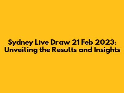 Hey guys! Let's dive into the Sydney Live Draw that happened on February 21, 2023. We're gonna break down the results, giving you a clear picture of what numbers came up and what it all means. Whether you're a seasoned lottery enthusiast or just curious about the day's events, this is your go-to guide for everything related to that specific draw. We'll look at the winning numbers, any patterns that might be visible, and the overall impact of the draw. This isn't just about listing numbers; it's about providing insight and context, helping you understand the draw's outcome from every angle. So, buckle up! We're about to explore the Sydney Live Draw results from February 21, 2023.
