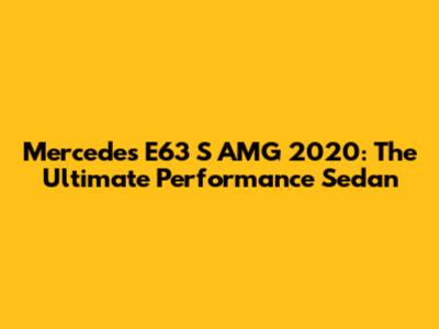 Mercedes E63 S AMG 2020: The Ultimate Performance Sedan