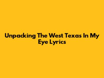 Unpacking The 'West Texas In My Eye' Lyrics