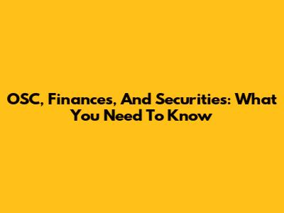 OSC, Finances, And Securities: What You Need To Know
