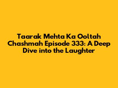 Hey guys, let's take a trip down memory lane and revisit the iconic 333rd episode of Taarak Mehta Ka Ooltah Chashmah! This episode, like so many others, is a treasure trove of humor, heart, and the everyday chaos that makes the Gokuldham Society so darn relatable. Remember, this show isn't just a sitcom; it's a cultural phenomenon that has kept us glued to our screens for years. So, grab your favorite snacks, settle in, and let's dissect what made episode 333 such a memorable experience. We're going to break down the key moments, the hilarious gags, and the underlying themes that continue to resonate with audiences across generations. This episode is packed with the signature Taarak Mehta charm, blending slapstick comedy with clever social commentary. It's a testament to the show's ability to create a world where anything is possible, and the simplest situations can explode into uproarious laughter. The characters' personalities shine, and their interactions, fueled by love, misunderstandings, and a healthy dose of mischief, are what make this episode (and the series as a whole) so special. Let's not forget the catchy theme song, the vibrant sets, and the talented cast who bring these characters to life. Every element, from the writing to the direction to the acting, comes together to create a truly unforgettable viewing experience. It's more than just an episode; it's a slice of life, a dose of laughter, and a reminder that even in the most chaotic situations, there's always something to smile about. This episode is full of moments that showcase the genius of the writers. They masterfully craft storylines that are both funny and thought-provoking. The episode's success lies in its ability to mirror real-life situations and the characters' reactions. The relatable characters and situations are what make the show so popular. Throughout the episode, viewers are treated to a whirlwind of comic situations, each building on the last to create a crescendo of humor. Whether it’s Jethalal's latest predicament or Babita's witty comebacks, the episode delivers on its promise of consistent laughs. The characters evolve, situations change, but the core essence of the show remains, and that’s what makes Taarak Mehta Ka Ooltah Chashmah a timeless classic. It's an episode that reminds us of the joy of community, the importance of laughter, and the enduring power of family, even the ones we choose. So, ready to dive into the specifics? Let's go!