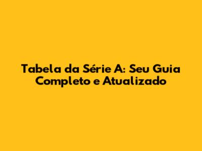 O Que é a Tabela da Série A e Por Que Ela Importa?