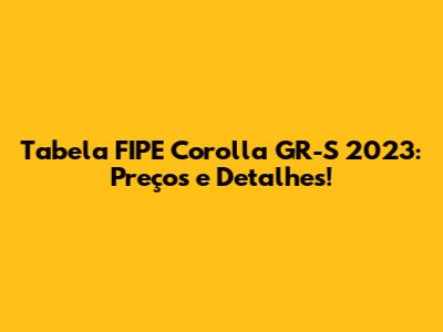 Hey guys! Are you looking for information about the Tabela FIPE of the Corolla GR-S 2023? Well, you've come to the right place! In this article, we'll dive deep into everything you need to know about the pricing and details of this amazing car. Let's get started!