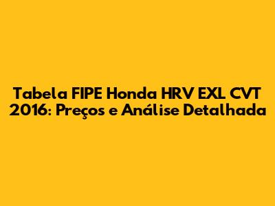 - Overall market demand for the Honda HRV EXL CVT 2016 can also impact its Tabela FIPE value. If the vehicle is in high demand, prices may be slightly higher. Conversely, if there's an oversupply of used HRVs, prices may be more competitive.