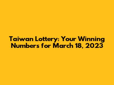 Hey guys! Are you ready to dive into the exciting world of the Taiwan Lottery? On March 18, 2023, the numbers were drawn, and if you played, you're probably itching to know if you're holding a winning ticket. In this article, we'll break down everything you need to know about the winning numbers, how to check your tickets, and some fun facts about the Taiwan Lottery itself. So, grab your ticket, settle in, and let's see if you're a lucky winner!