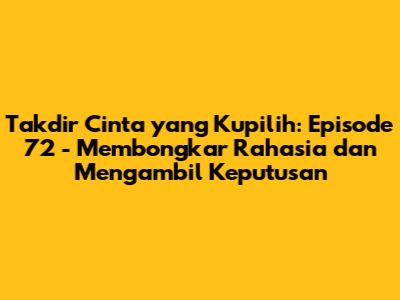 Takdir Cinta yang Kupilih Episode 72 adalah episode yang wajib ditonton bagi para penggemar setia. Episode ini penuh dengan drama, intrik, dan pilihan hidup yang akan membuat kalian terpaku di depan layar. Jangan lewatkan pengungkapan rahasia, perubahan hubungan antar tokoh, dan akhir episode yang menggantung. Siapkan diri kalian untuk rollercoaster emosi dan kejutan tak terduga. Sampai jumpa di episode selanjutnya! Dan jangan lupa, bagikan pendapat kalian tentang episode ini di media sosial, ya!