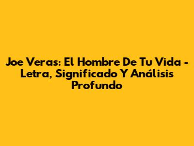 Joe Veras: El Hombre De Tu Vida - Letra, Significado Y Análisis Profundo