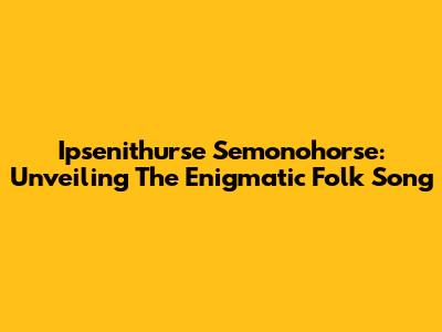 Ipsenithurse Semonohorse: Unveiling The Enigmatic Folk Song