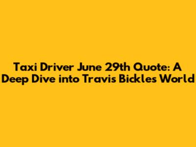 Hey guys! Let's dive deep into one of the most iconic movie moments ever: the Taxi Driver June 29th quote. This isn't just any line; it's a pivotal piece of dialogue that encapsulates the film's themes, Travis Bickle's character, and Martin Scorsese's masterful storytelling. We're going to break down the quote, explore its context, and understand why it still resonates with audiences today. Buckle up, because we're about to take a ride through the gritty streets of 1970s New York City!