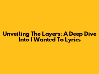 Unveiling The Layers: A Deep Dive Into 'I Wanted To' Lyrics