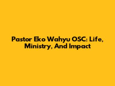 Pastor Eko Wahyu OSC: Life, Ministry, And Impact