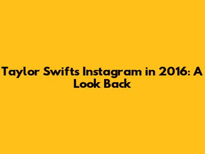 The Legacy of Taylor Swift's 2016 Instagram