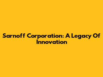 Sarnoff Corporation: A Legacy Of Innovation