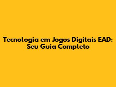 O Que é Tecnologia em Jogos Digitais EAD?