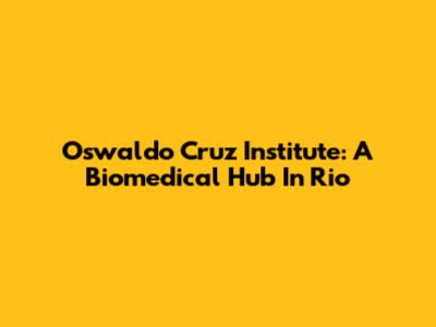 Oswaldo Cruz Institute: A Biomedical Hub In Rio