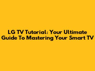 LG TV Tutorial: Your Ultimate Guide To Mastering Your Smart TV