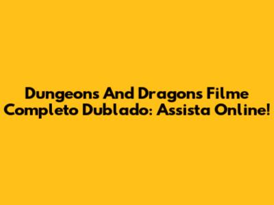 Dungeons And Dragons Filme Completo Dublado: Assista Online!