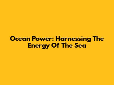Ocean Power: Harnessing The Energy Of The Sea